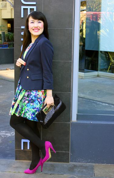 For a casual dress, I often like to pair it with a blazer. For me, the blazer frames and brings structure to a more casual outfit. This is generally a quick way to achieve a more thoughtful and put together look that transforms casual, or fashion forward, weekend attire to a more work appropriate week day office outfit.